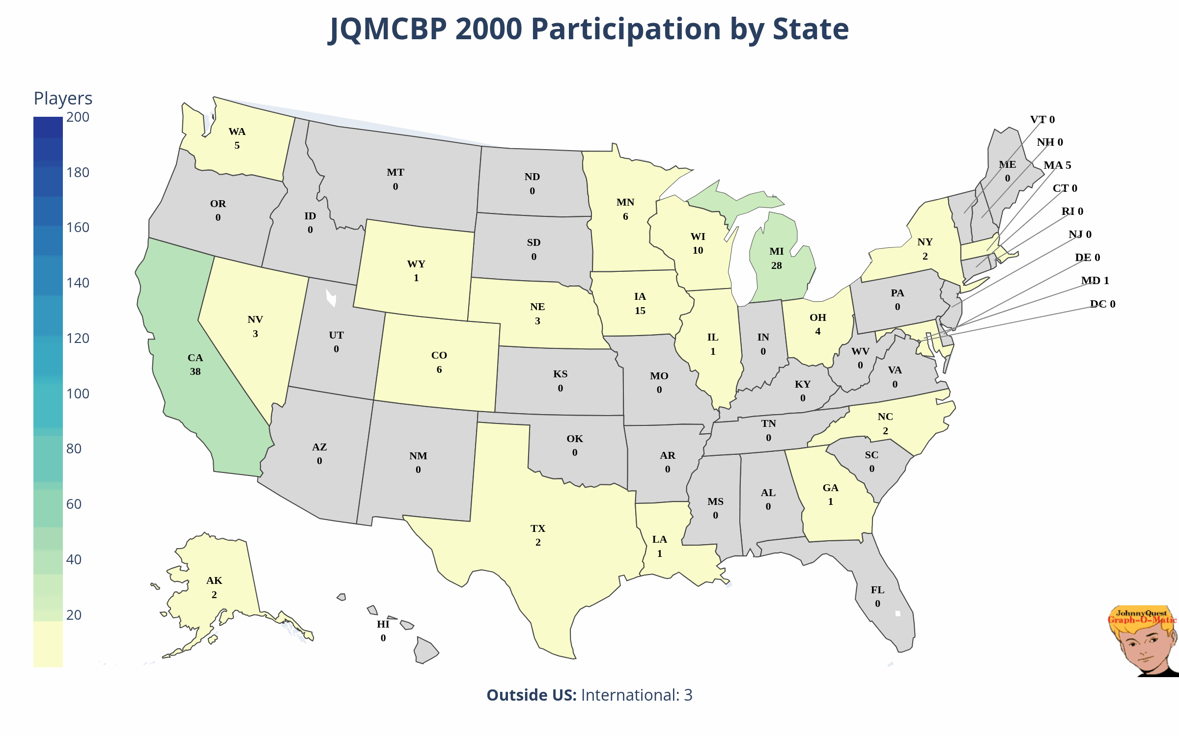 Not to just make one choropleth, instead I made a ton of them, then turned them into an animation, because of course I did. We at the Johnny Quest Memorial Candy Bar Pool Division of Useless Data Visualization and Accounts Receivable (spoiler alert: it's just me) leave no stone unturned. Here it is in all its glory:JQMCBP V to JQMCBP XXIX: The Rise of the Michiganders